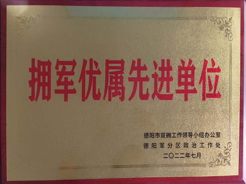 德陽(yáng)市雙擁工作領(lǐng)導(dǎo)小組辦公室、德陽(yáng)軍分區(qū)政治工作處授予中江公司2022年度“擁軍優(yōu)屬先進(jìn)單位”榮譽(yù)稱號(hào)
