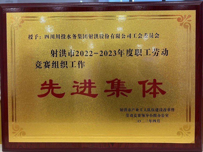 射洪市產(chǎn)業(yè)工人隊(duì)伍建設(shè)改革暨勞動(dòng)競(jìng)賽領(lǐng)導(dǎo)小組辦公室授予射洪公司2022-2023年度“勞動(dòng)競(jìng)賽組織先進(jìn)集體獎(jiǎng)“榮譽(yù)稱號(hào)