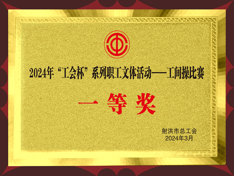 射洪市總工會(huì)授予射洪公司2024年度“工會(huì)杯”系列職工文體活動(dòng)—工間操比賽一等獎(jiǎng)