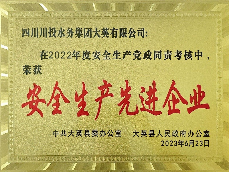 中共大英縣委辦公室、大英縣人民政府辦公室授予大英公司2022年度“安全生產(chǎn)工作先進(jìn)企業(yè)”榮譽(yù)稱號(hào)