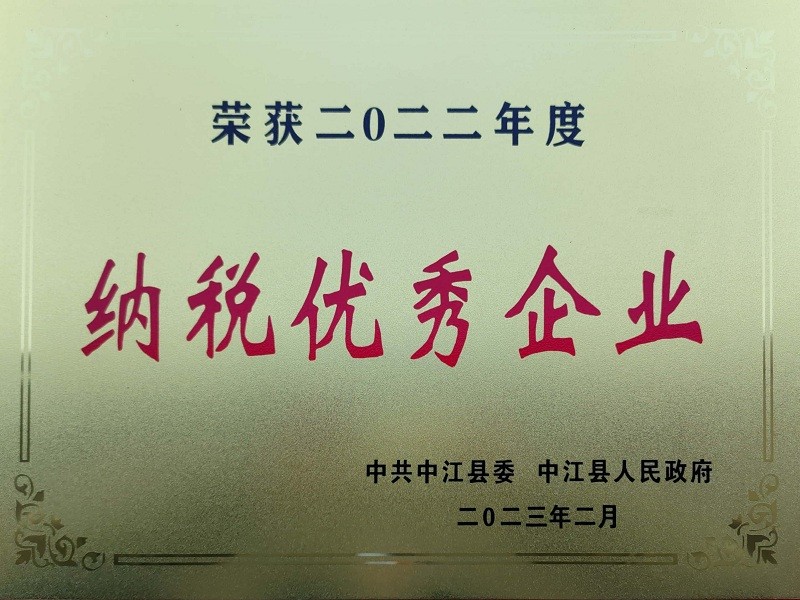 中共中江縣委、中江縣人民政府授予中江公司“2022納稅優(yōu)秀企業(yè)“榮譽(yù)稱號(hào)