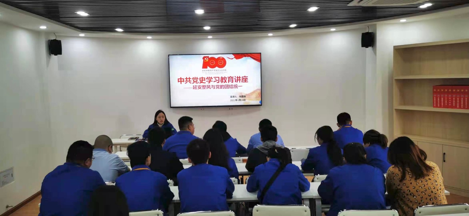 為了深入學習貫徹習近平總書記在黨史教育學習動員大會上的重要講話精神,落實習近平總書記關于黨史、新中國史、改革開放史、社會主義發(fā)展史,喜迎建黨百年專題教育,重溫延安整風歷史,弘楊延安整風精神,4月16日,川投水務射洪水司團支部開展《延安整風與黨的團結統(tǒng)一》專題講座。本次講座由團支部書記向國麗擔任主講人。公司全體團員到場參與講座。