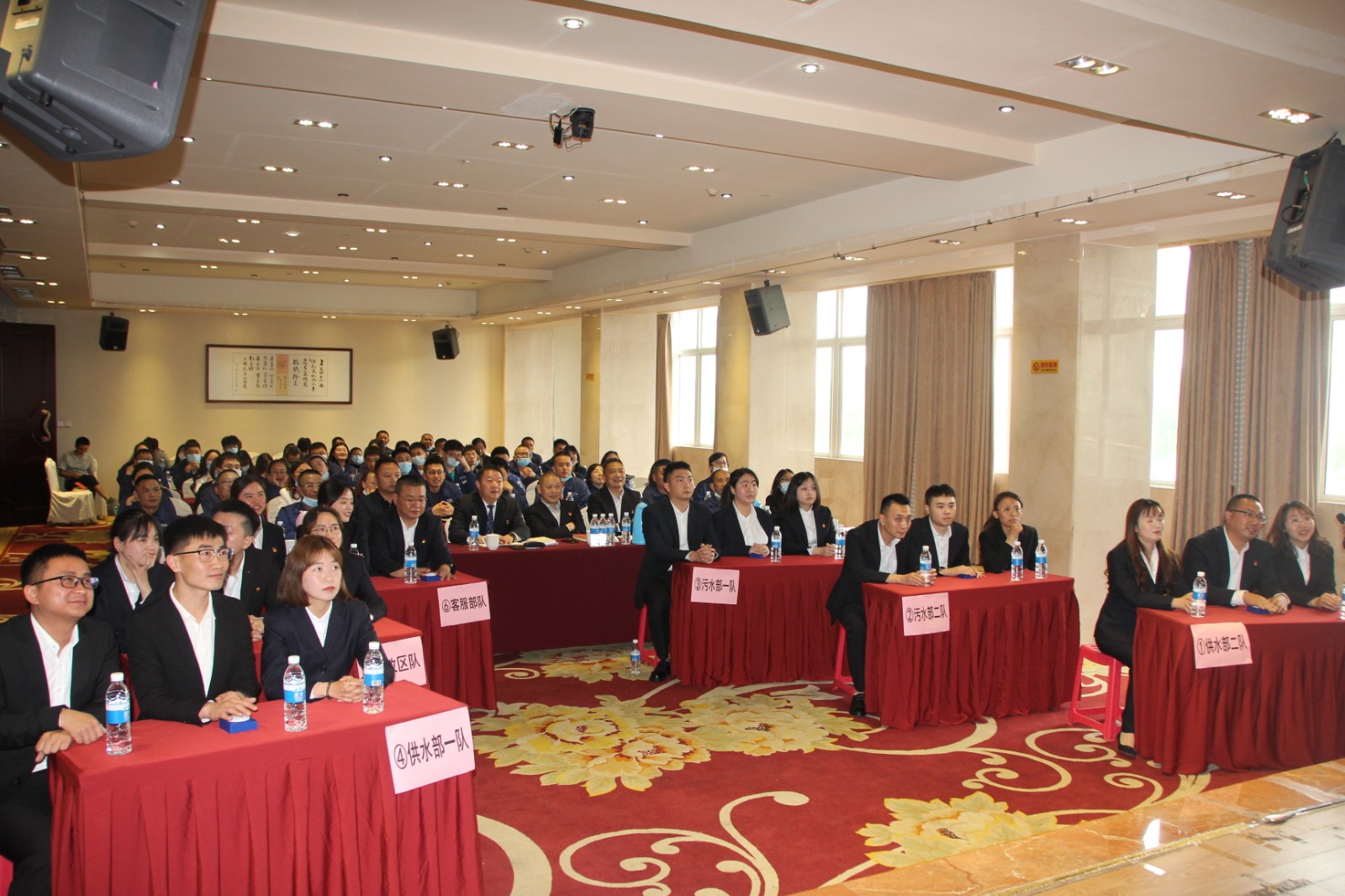 隨后,為慶祝建黨100周年,重溫中國共產黨光輝歷程,進一步激發(fā)公司黨員干部職工的愛黨、愛國、愛崗熱情,堅定共產主義理想信念,提升全體黨員干部職工的思想政治覺悟和黨性修養(yǎng),不斷增強工作、學習的責任感和使命感,營造推動公司又好又快發(fā)展的良好氛圍,促進黨史學習教育的深入開展,“頌光輝歷程 展時代新風”黨史、兩會知識競賽活動在黨支部書記朱禹同志的致辭后拉開了帷幕,本次競賽活動每隊3人,共分為供水部一隊、供水部二隊、污水部一隊、污水部二隊、行政區(qū)隊、客服部隊6個隊伍,題型有必答題、搶答題、限時題及風險題,在比賽末還穿插了觀眾互動環(huán)節(jié)。在競賽現(xiàn)場,各隊選手面對主持人的提問積極回答、沉著應對。必答題環(huán)節(jié)選手穩(wěn)扎穩(wěn)打,敏捷思考;搶答題環(huán)節(jié)現(xiàn)場氣氛緊張激烈,各隊選手拼反應,拼積累,互不相讓;風險題環(huán)節(jié)各代表隊結合當前的分數(shù),謹慎選題,凝聚知識,小心作答。經(jīng)過幾輪激烈角逐,本次活動共評選出一、二、三等獎、團體優(yōu)秀以及最佳表現(xiàn)獎。