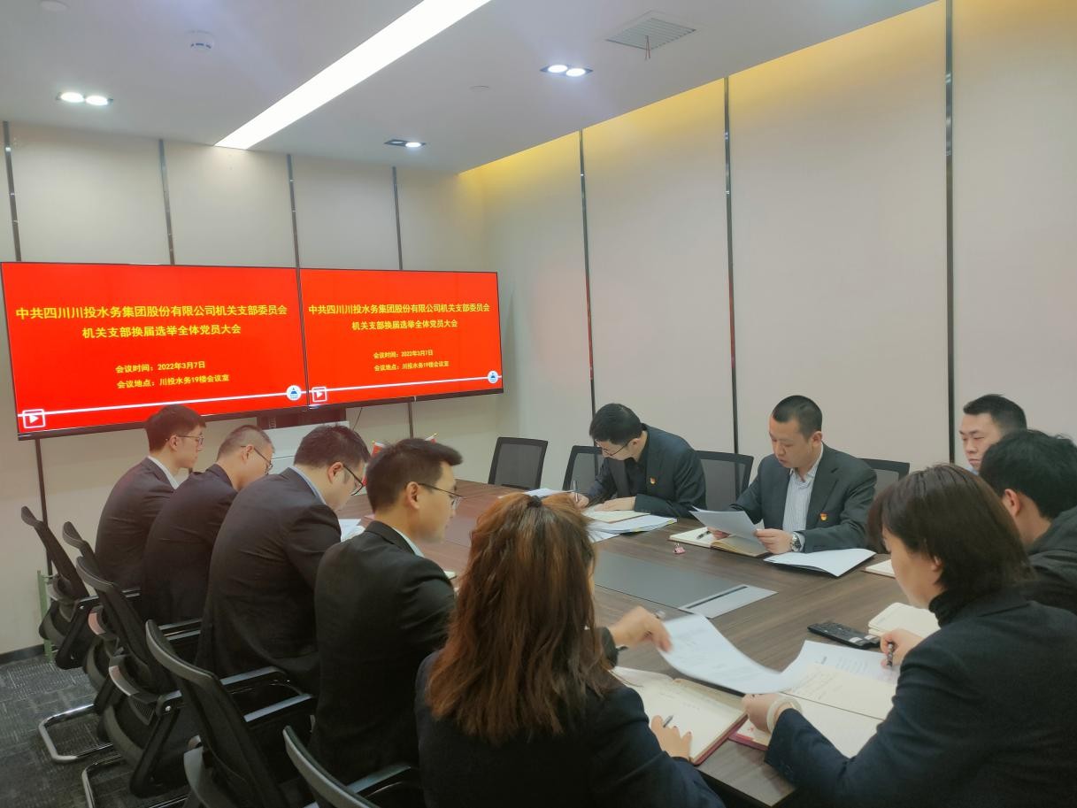 2022年3月7日,川投水務集團機關黨支部組織召開全體黨員大會進行換屆選舉。會議由李至彬同志主持,機關黨支部全體12名黨員參加會議。