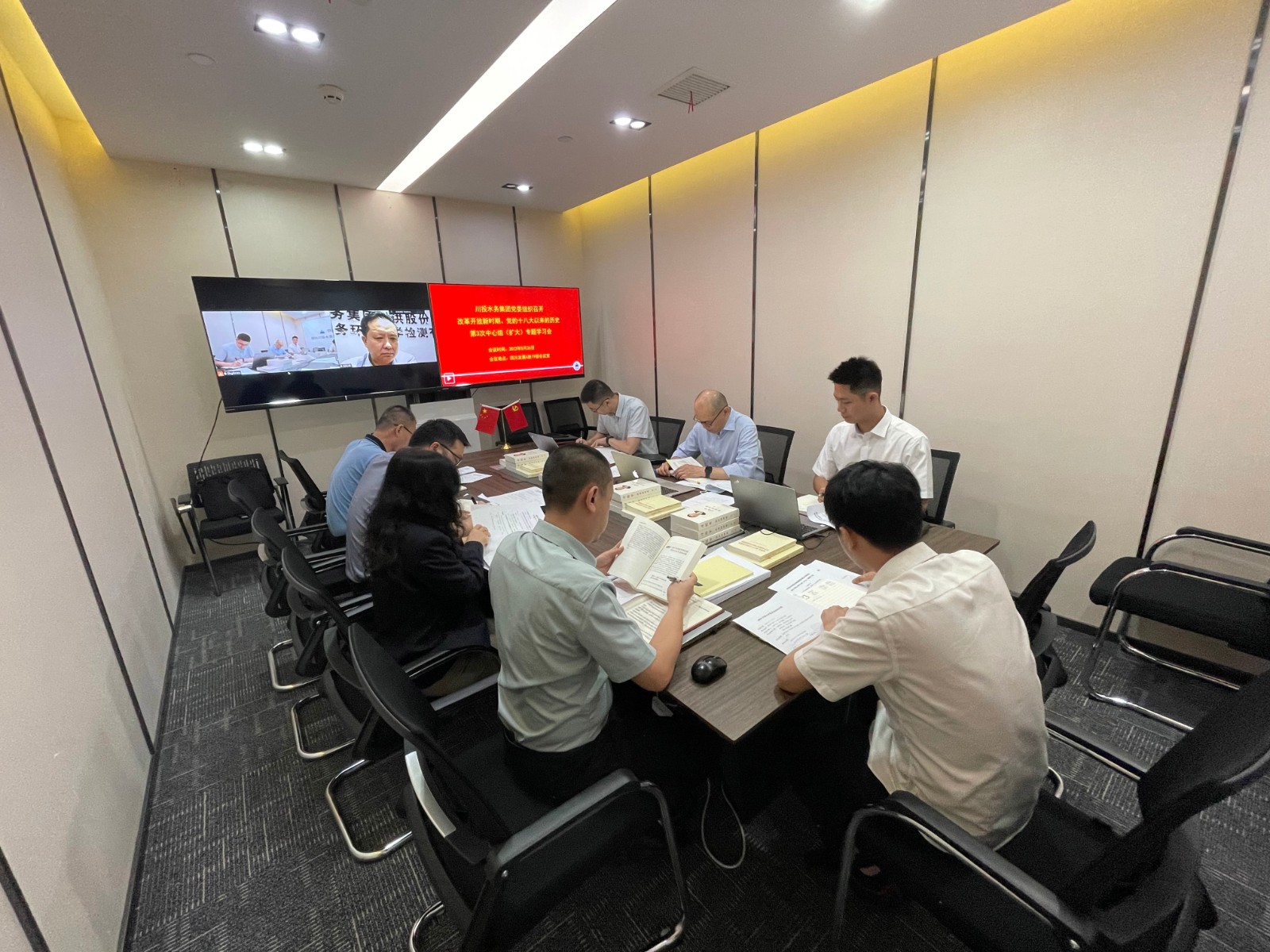 川投水務(wù)集團(tuán)本部中層以上黨員干部參加中心組(擴(kuò)大)專題學(xué)習(xí)會。