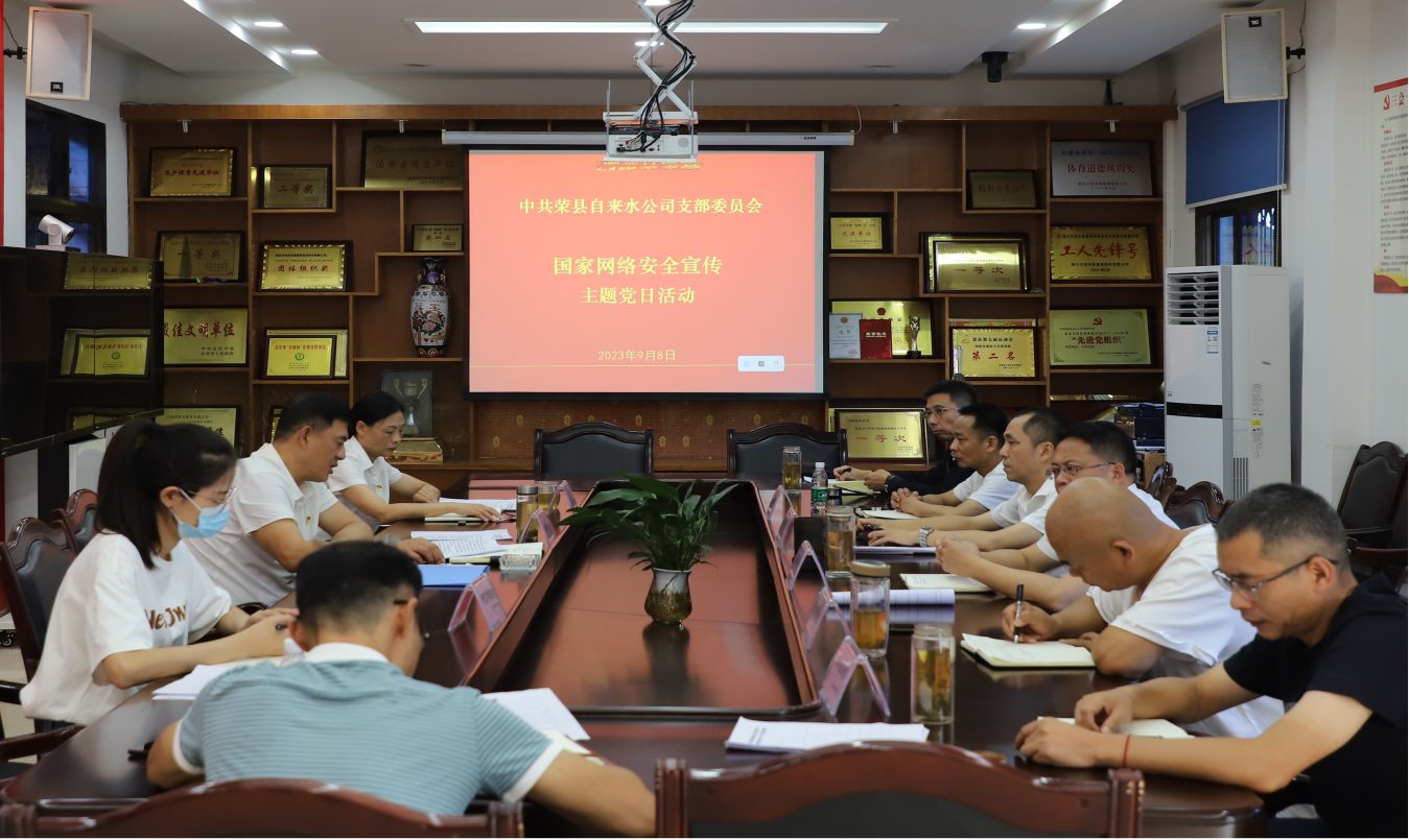 為幫助公司職工更好地了解、感知身邊的網(wǎng)絡(luò)安全風(fēng)險(xiǎn),增強(qiáng)網(wǎng)絡(luò)安全意識(shí),共同維護(hù)國(guó)家網(wǎng)絡(luò)安全,9月8日,榮縣水司黨支部開展國(guó)家網(wǎng)絡(luò)安全宣傳主題黨日活動(dòng),活動(dòng)由支部書記、執(zhí)行董事、總經(jīng)理龔慶主持,全體黨員參會(huì)。