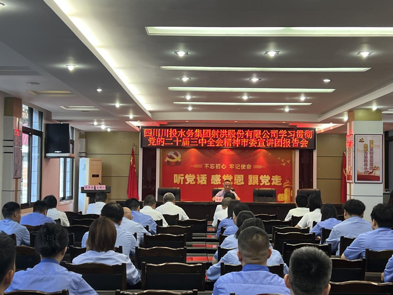 9月13日,川投水務(wù)射洪公司舉行學(xué)習(xí)貫徹黨的二十屆三中全會精神市委宣講團(tuán)報(bào)告會。遂寧市勞動(dòng)模范、射洪市委宣講團(tuán)勞模工匠宣講分團(tuán)成員、公司制水調(diào)度班班長陳建峰同志作宣講報(bào)告,射洪市總工會代表、公司領(lǐng)導(dǎo)班子、全體黨員、職工代表共計(jì)50余人參加了會議。