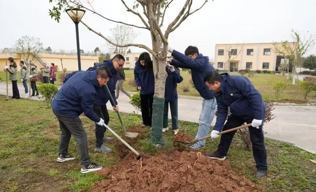 活動(dòng)開(kāi)始前,縣退役軍人事務(wù)局黨組書(shū)記、局長(zhǎng)李冕,中江公司黨支部書(shū)記、董事長(zhǎng)、總經(jīng)理朱禹,分別作動(dòng)員講話。植樹(shù)現(xiàn)場(chǎng),大家三五成組、干勁十足、分工協(xié)作,按照要求揮鍬鏟土、扶苗踩實(shí),各環(huán)節(jié)銜接有序、配合默契,經(jīng)過(guò)大家的努力,80余株李樹(shù)、桃樹(shù)、桂花樹(shù)等樹(shù)苗迎風(fēng)而立,為廠區(qū)增添了新綠。植樹(shù)活動(dòng)結(jié)束后,縣退役軍人局、縣融媒體中心和大北街社區(qū)的黨員同志們,還參觀了興隆污水處理廠,近距離感受家中的污水由污變清,到再次利用的全過(guò)程。