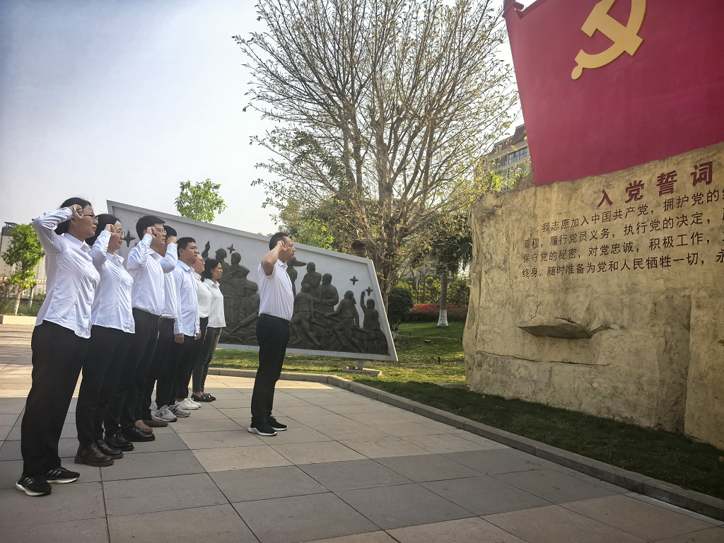 本次活動,大家認(rèn)真參觀了紅色主題公園內(nèi)一塊塊記載著黨發(fā)展歷史的石碑與生動再現(xiàn)了革命先輩艱苦奮斗的雕塑,這些石碑與雕塑讓黨員們近距離感受革命先輩的奮斗歷程以及波瀾壯闊的革命歲月。面對鮮紅的黨旗,全體黨員重溫入黨誓詞,用堅定有力的誓言表達(dá)對黨的忠誠與為人民服務(wù)的決心。