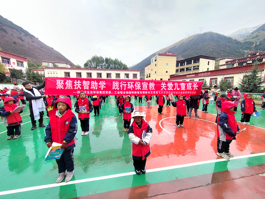 在助力產(chǎn)業(yè)發(fā)展的同時,工作小組專程前往白玉縣蓋玉片區(qū)寄宿制學校開展教育幫扶,捐贈書包、筆記本等學習用品2000余件,緩解學生用品短缺困境。工作小組還圍繞“生物多樣性” 開展特色宣講,設(shè)置環(huán)保小知識互動環(huán)節(jié),幫助學生樹立生態(tài)保護理念;課后與學校教師交流,了解學生學習生活及教學需求,為后續(xù)長期教育幫扶積累了第一手資料。