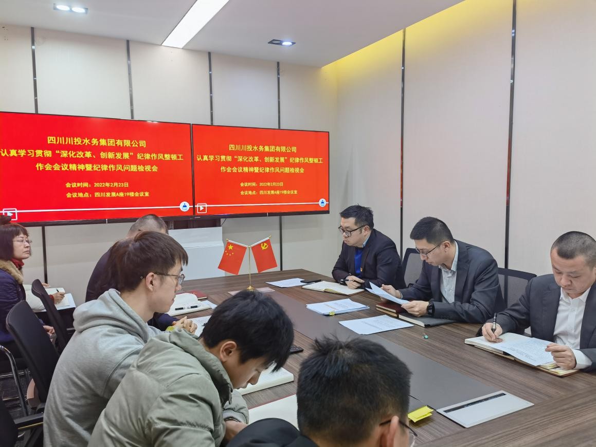 會(huì)議首先,傳達(dá)學(xué)習(xí)了四川發(fā)展黨委書記、董事長李文清在2022年度黨風(fēng)廉政建設(shè)暨紀(jì)律作風(fēng)整頓工作會(huì)上的重要講話精神,以及《關(guān)于開展“深化改革、創(chuàng)新發(fā)展”紀(jì)律作風(fēng)整頓工作的通知》《公司領(lǐng)導(dǎo)在四川發(fā)展、生態(tài)環(huán)保集團(tuán)2022年度黨風(fēng)廉政建設(shè)暨紀(jì)律作風(fēng)整頓工作會(huì)上講話的通知》《四川發(fā)展黨委副書記、副董事長、總經(jīng)理張宜剛在四川發(fā)展深化改革創(chuàng)新發(fā)展官貫會(huì)上的講話》《四川發(fā)展黨委委員、職工董事景平關(guān)手《四川發(fā)展深化改革創(chuàng)新發(fā)展總體方案》的說明》等文件精神,并就川投水務(wù)集團(tuán)如何結(jié)合企業(yè)實(shí)際開展“深化改革、創(chuàng)新發(fā)展”紀(jì)律作風(fēng)整頓工作進(jìn)行安排部署。