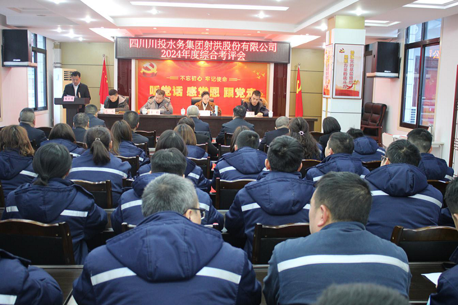 2024年12月26日,川投水務(wù)黨委成員、副總經(jīng)理唐韜一行4人赴射洪公司開展2024年綜合考評工作,射洪公司領(lǐng)導(dǎo)班子、中層干部及員工代表共計50余人參加會議。
