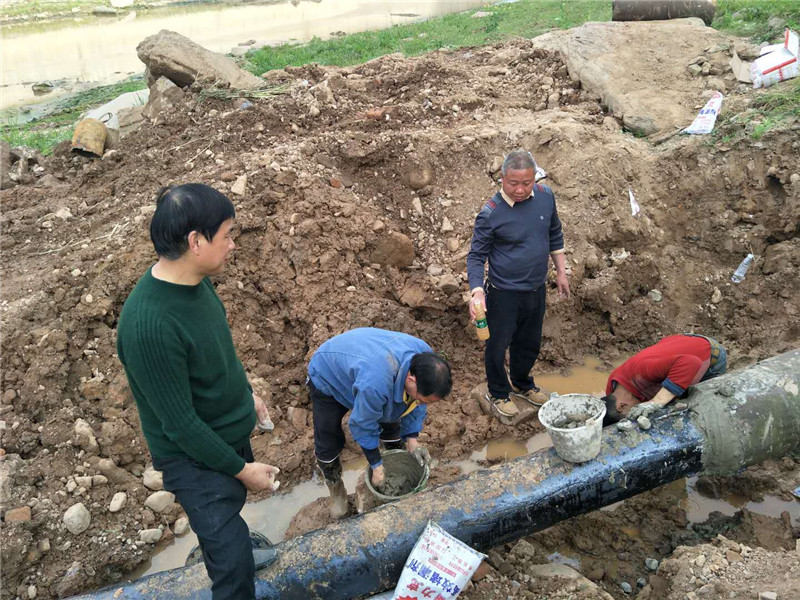 2019年3月20日,劍閣水司執(zhí)行董事、總經(jīng)理何天政帶領(lǐng)副總經(jīng)理杜剛等相關(guān)部門負(fù)責(zé)人,就檢查中發(fā)現(xiàn)的劉家河原水管道被洪雨季節(jié)沖刷裸露在河床外的隱患進(jìn)行整治,確保洪水季節(jié)來臨原水管道的正常供應(yīng)保障。
