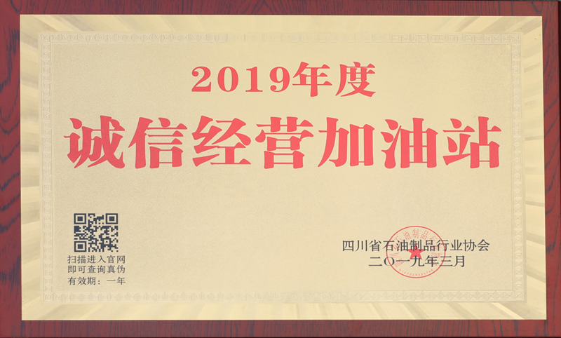 誠(chéng)信比黃金更重要。2019年3月,從四川省石油制品行業(yè)協(xié)會(huì)全省先進(jìn)表彰暨誠(chéng)信經(jīng)營(yíng)加油站授牌大會(huì)上傳來捷報(bào):宏源氣司加油站被授予“誠(chéng)信經(jīng)營(yíng)加油站”光榮稱號(hào)。