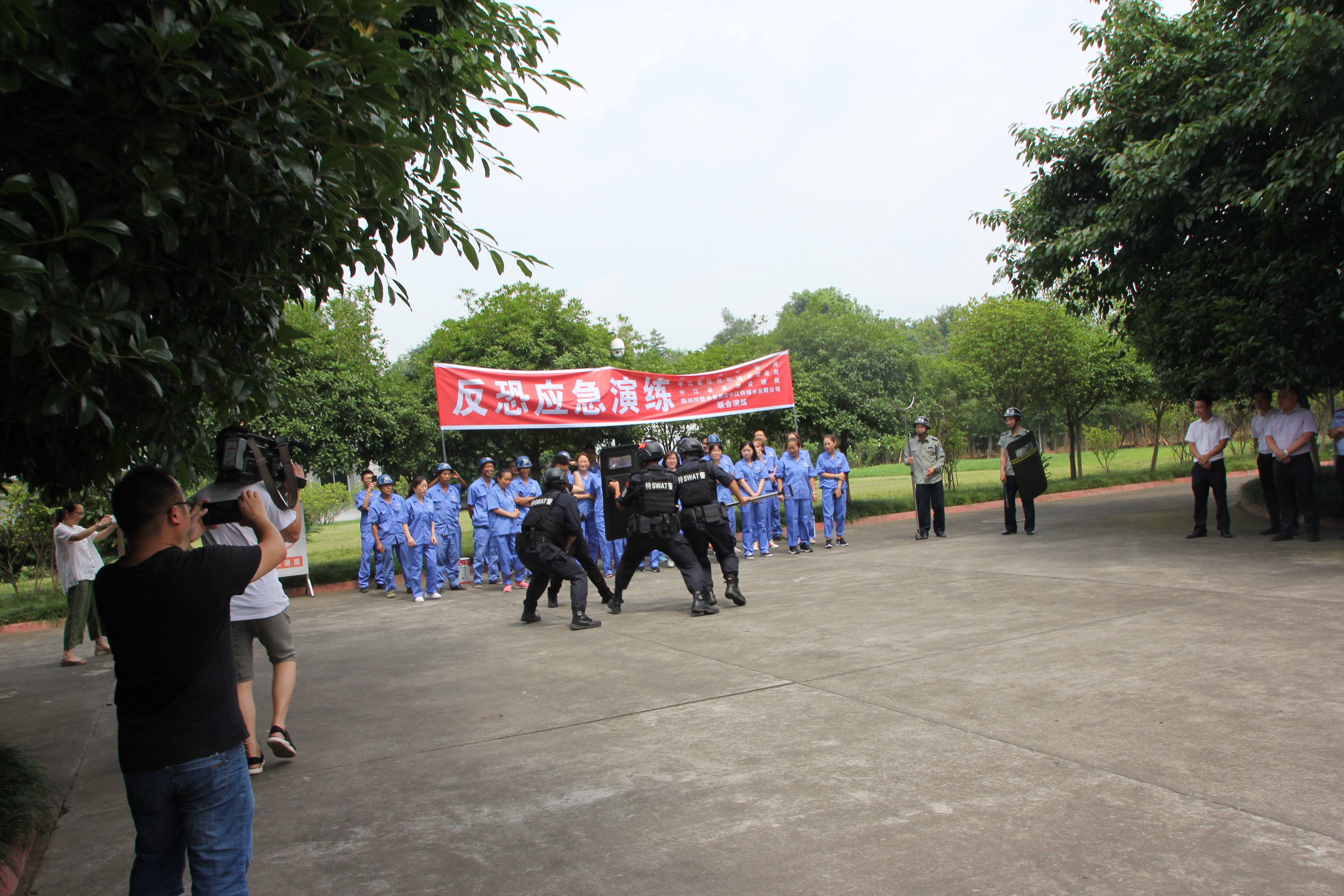 本次演練得到中江縣人民政府、縣公安局、縣住建局、縣應(yīng)急管理局和電視臺(tái)的高度重視和配合,縣政府辦公室副主任程勃、縣住建局局長廖強(qiáng)、縣公安局副局長鄔建、特警大隊(duì)副教導(dǎo)員陳基順、中隊(duì)長李樹冠、縣應(yīng)急管理局副局長王文鋒等領(lǐng)導(dǎo)全程觀摩。本次演練共出動(dòng)警用和應(yīng)急車輛9臺(tái)次,參加演練干警、應(yīng)急處置、觀摩人員達(dá)60余人。此次演練是對(duì)我縣城市供水突發(fā)事件應(yīng)急處置工作的一次總結(jié),有效檢驗(yàn)了中江水司反恐處置突發(fā)事件應(yīng)急預(yù)案的可操作性,為確保城市安全供水,為新中國成立70周年創(chuàng)造安全穩(wěn)定的社會(huì)環(huán)境的一次獻(xiàn)禮!
