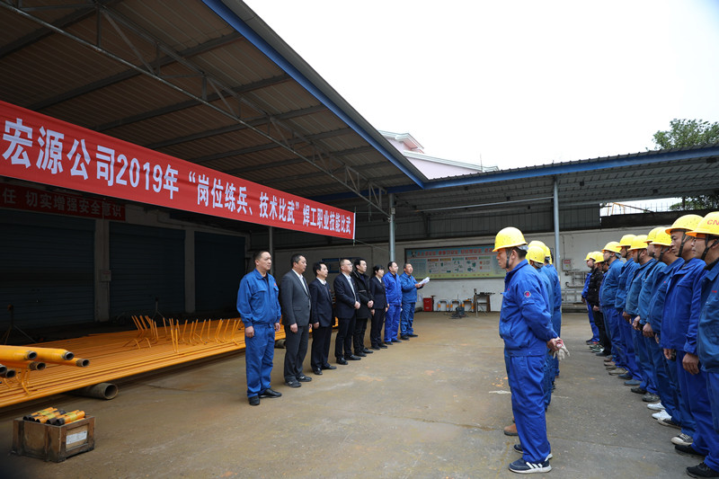 2019年12月17日下午2:30分,宏源公司2019年度“崗位練兵·技術比武”焊工職業(yè)技能比武項目在宏源公司燃氣管道加工坊舉行。射洪市總工會黨組書記、常務副主席吳燁蒞臨指導,宏源公司黨委書記、總經(jīng)理李旭東帶領公司黨委委員、班子成員出席活動。