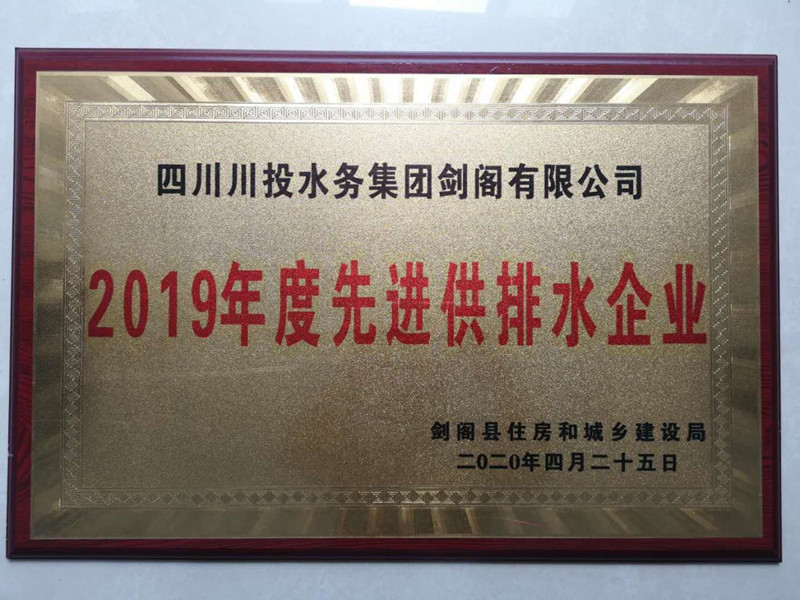 2020年4月28日,在劍閣縣住房和城鄉(xiāng)建設(shè)局組織召開的全縣住建系統(tǒng)工作會上,劍閣水司被授予“2019年度先進(jìn)供排水企業(yè)”榮譽稱號。