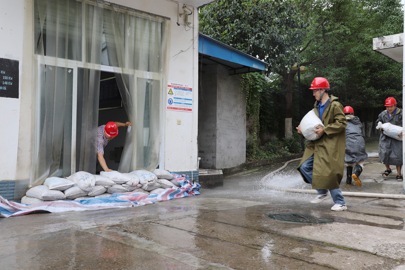 隨后,模擬在天氣突然強(qiáng)降雨的情況下,接到險(xiǎn)情報(bào)告后,按照演練方案立即啟動(dòng)防洪、防汛、防澇應(yīng)急預(yù)案。值班人員發(fā)現(xiàn)險(xiǎn)情后,立即向部門(mén)負(fù)責(zé)人報(bào)告,參演人員迅速領(lǐng)取防汛器具并用沙袋進(jìn)行防護(hù),阻擋洪水進(jìn)入泵房。