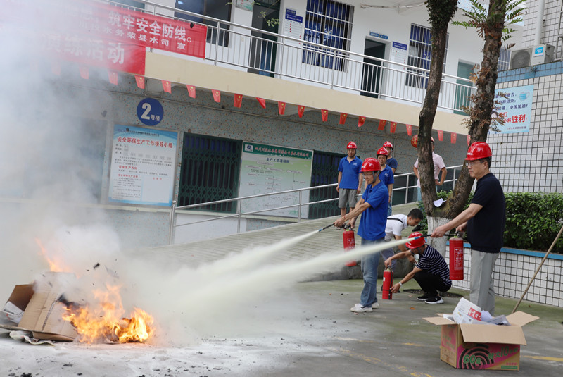 下午3點(diǎn),在進(jìn)行消防應(yīng)急演練前,首先由公司安全管理人員對(duì)干粉滅火器的基本情況及如何正確使用進(jìn)行了詳細(xì)講解。隨后,在廠(chǎng)區(qū)院壩模擬突發(fā)火災(zāi)情況下,干部職工正確使用干粉滅火器材對(duì)突發(fā)情況進(jìn)行滅火,全力將火撲滅。