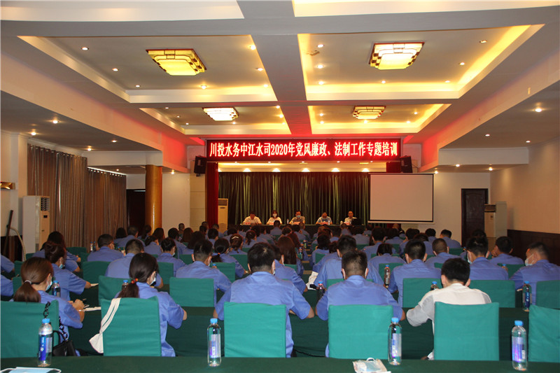 為進(jìn)一步加強(qiáng)中江水司黨風(fēng)廉政建設(shè)和法制工作,按照川投集團(tuán)和川投水務(wù)集團(tuán)工作部署,2020年7月15日下午,中江水司組織召開了2020年黨風(fēng)廉政、法制工作專題培訓(xùn)會(huì)。此次培訓(xùn)會(huì)邀請(qǐng)了德陽(yáng)市政法委副書記、德陽(yáng)市法學(xué)會(huì)常務(wù)副會(huì)長(zhǎng)程正春、四川仁競(jìng)律師事務(wù)所主任吳明全為大家專題授課。中江縣政法委副書記冉輝、德陽(yáng)市法學(xué)會(huì)秘書科科長(zhǎng)曹茗菁陪同出席。公司全體員工、法律顧問(wèn)共計(jì)91人參加培訓(xùn)。會(huì)議由黨支部書記、董事長(zhǎng)、總經(jīng)理朱禹主持。