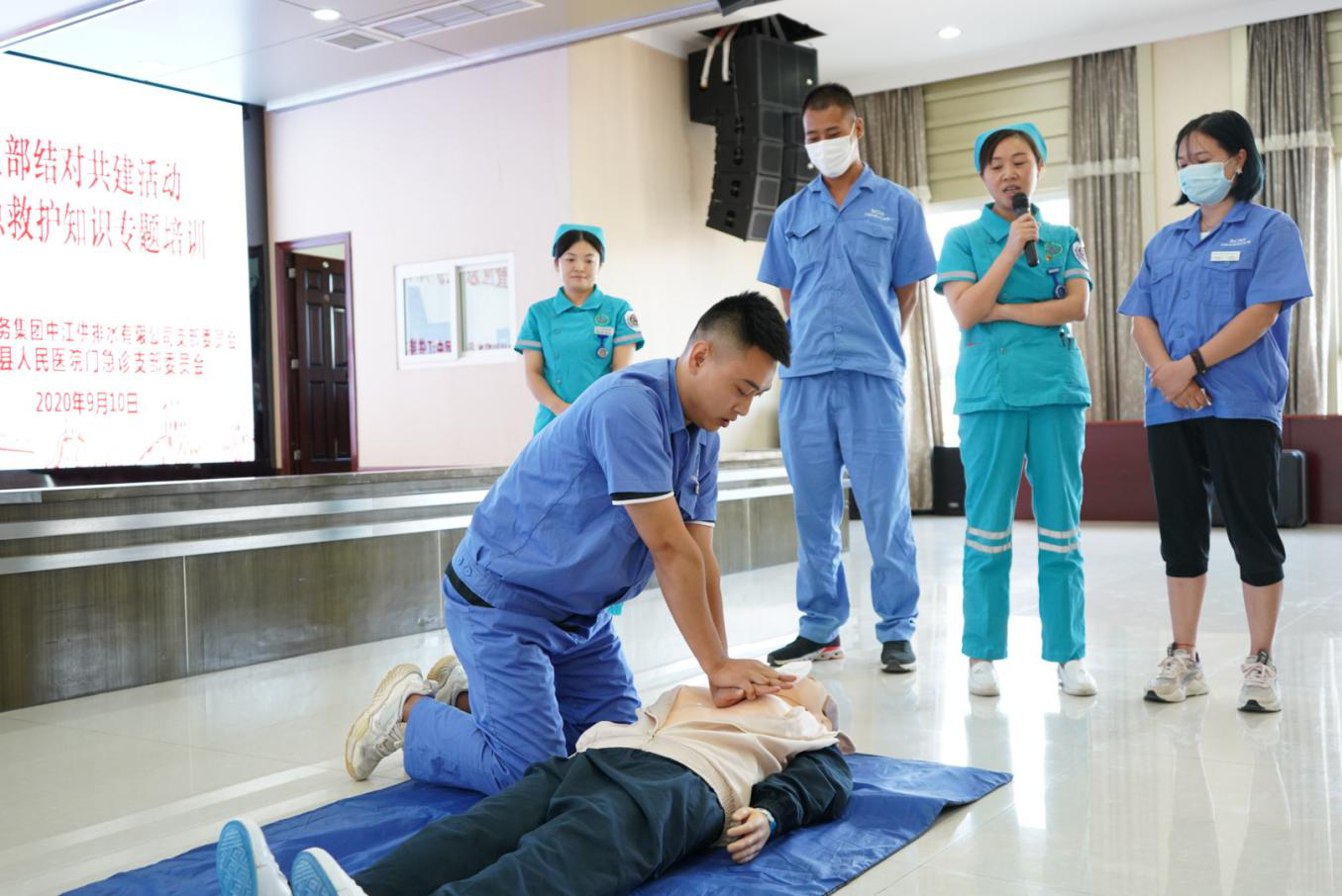 為深入貫徹落實川投集團(tuán)黨委“雙爭雙創(chuàng)”和川投水務(wù)集團(tuán)黨委“雙爭雙創(chuàng)雙促”活動要求,以及貫徹執(zhí)行“安全第一,預(yù)防為主”的安全指導(dǎo)方針,通過急救知識培訓(xùn),提高職工應(yīng)急救護(hù)能力。9月10日,中江水司黨支部與中江縣人民醫(yī)院門急診支部委員會開展結(jié)對共建活動,聯(lián)手為中江水司100余名員工進(jìn)行了應(yīng)急救護(hù)專題培訓(xùn)。本次活動由中江水司常務(wù)副總經(jīng)理秦榮主持。