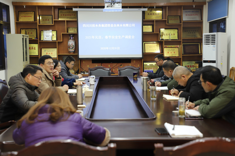 元旦將近,為有效防范和遏制安全生產事故發(fā)生,確??h城區(qū)的安全穩(wěn)定供水,12月31日上午,川投水務榮縣水司在會議室召開2021年元旦、春節(jié)安全生產調度會。經營班子成員,生產、工程及綜合后勤等部門管理人員共計11人參會,會議由執(zhí)行董事、總經理龔慶主持。