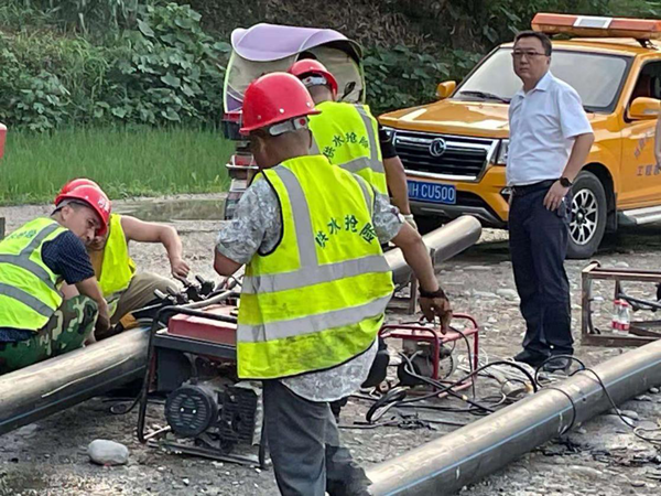 韓名泉副總經(jīng)理為現(xiàn)場忙碌的搶險隊送來了藿香正氣液,辦公室的同志全力作好后勤保障,為加班搶修顧不上吃飯的施工人員送來了可口的飯菜,赤化鎮(zhèn)供水站也送來了清涼的純凈水,安全監(jiān)察部仔細巡查施工安全情況。各部門有序配合,忙而不亂。經(jīng)過三天兩夜緊張有序的奮戰(zhàn),最終在18日晚上9點56分順利完成通水。此次搶修劍閣水司共安裝直徑160毫米和200毫米的PE管道約300米,開挖土方約30多立方米,并在管道施工結(jié)束后,對開挖工作面回填平整恢復原貌。搶險隊員們放棄了周末休假和家人團聚的時間,以高質(zhì)量的搶修工作贏得了周圍群眾的交口稱贊,他們用自己的實際行動踐行了為人民服務(wù)的莊嚴承諾與初心。