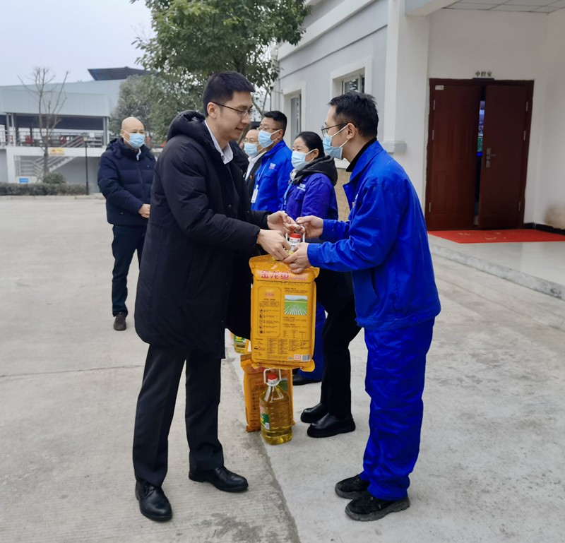 嚴(yán)總代表川投水務(wù)集團(tuán)在新苗水廠親切慰問(wèn)了公司困難黨員、困難職工共計(jì)5人,送上了慰問(wèn)品和慰問(wèn)信。考評(píng)組一行分別深入新苗水廠和太吉水廠生產(chǎn)制水一線進(jìn)行了現(xiàn)場(chǎng)檢查,查看了制水工藝流程、安全環(huán)保、水質(zhì)檢測(cè)、應(yīng)急物資儲(chǔ)備和疫情防控等方面工作。