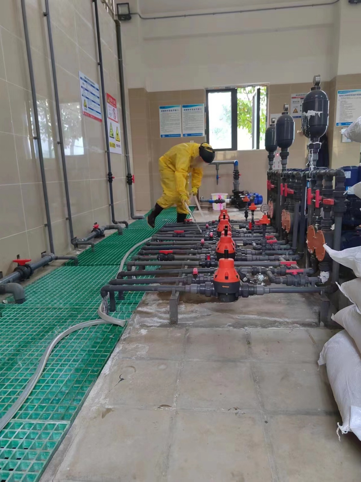6月14日,川投船重一枝山污水處理廠組織全體員工開展2022年度突發(fā)環(huán)境事故處置應(yīng)急演練。演練模擬廠內(nèi)2#液堿投加泵出口閥門處泄漏環(huán)境事故,通過截斷泄漏閥門、搶險、取樣分析、調(diào)整工藝、恢復(fù)設(shè)備、投加藥劑等一些列應(yīng)急措施后,最終恢復(fù)生產(chǎn),水質(zhì)達標(biāo)排放。此次演練活動不僅增強了員工之間的團隊協(xié)助能力,還增強了員工處置突發(fā)環(huán)境事故的實操能力。