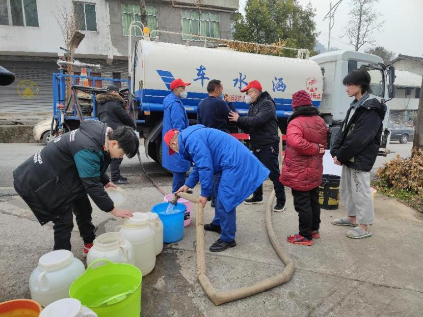 經(jīng)過(guò)多方溝通,1月5日上午,在縣住建局的協(xié)調(diào)下,公司借用園林所灑水車正式從下寺向普安送水?!按蠹铱斐鰜?lái)接水!”當(dāng)聽到工作人員的呼聲后,居民們紛紛從家里出來(lái)接水,有的拎著水桶,有的拖著水管,有的扛著抽水泵.....看見(jiàn)漸漸灌滿的蓄水池和水桶,居民們臉上洋溢著滿意的笑容,大家紛紛說(shuō)到:“感謝川投水務(wù)為我們送來(lái)飲用水,這是實(shí)實(shí)在在替我們老百姓辦實(shí)事?。 ?