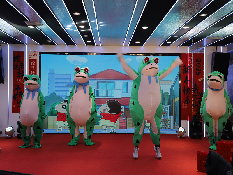 2025年迎春聯(lián)歡會在歡快的歌曲聲中拉開帷幕。各部門員工自行準(zhǔn)備編排的11個節(jié)目精彩紛呈,形式多樣,既有激情四溢的歌舞表演,又有幽默詼諧的相聲表演,還有深情并茂的朗誦與合唱等,充分展示了榮水職工們的多才多藝與團(tuán)隊協(xié)作精神。其中,由青年職工帶來的舞蹈《蛙蛙送福》,以其動感的旋律與活力四射的舞姿,瞬間點(diǎn)燃了現(xiàn)場的氣氛,贏得了陣陣掌聲。而安裝工程部帶來的相聲《笑話趣談》,則以幽默詼諧的方式,讓觀眾在歡笑中感到了濃濃的新春祝福,淋漓盡致地展現(xiàn)了公司積極向上、團(tuán)結(jié)奮進(jìn)的精神特質(zhì),表達(dá)了公司職工對2025年的美好祝愿與希望。聯(lián)歡會期間,還穿插了豐富多彩的互動游戲與抽獎環(huán)節(jié),將現(xiàn)場氣氛推向了一個又一個高潮。職工們積極參與,歡聲笑語不斷,整個會場洋溢著熱烈而歡快,充滿著活力與激情的氛圍。