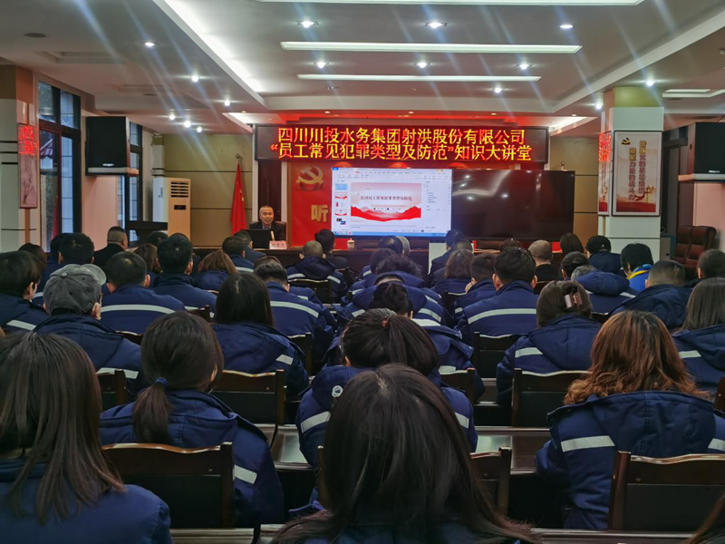 2月21日下午,川投水務(wù)射洪公司在三樓會(huì)議室開展“員工常見犯罪類型及防范”普法知識(shí)專題講座。此次講座由公司常年法律顧問張翠烈主講,公司領(lǐng)導(dǎo)班子、中層管理人員及各部門員工共80余人參加。