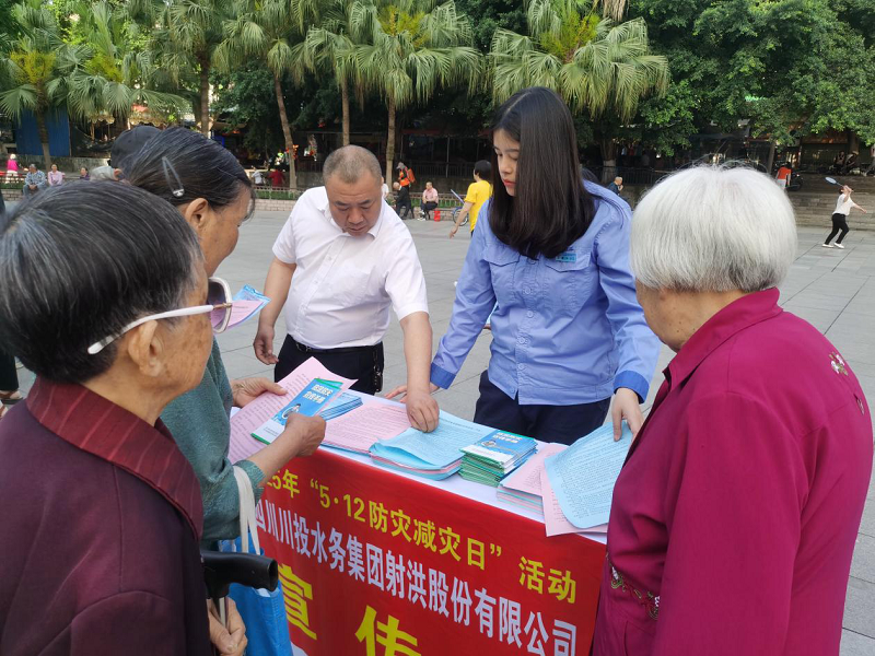 2025年5月12日是我國第17個(gè)防災(zāi)減災(zāi)日,圍繞“人人講安全、個(gè)個(gè)會(huì)應(yīng)急—排查身邊災(zāi)害隱患”為主題,5月12日上午,按照射洪市應(yīng)急管理局相關(guān)活動(dòng)要求,川投水務(wù)射洪公司在新世紀(jì)廣場開展了“防災(zāi)減災(zāi)”集中宣傳活動(dòng)。